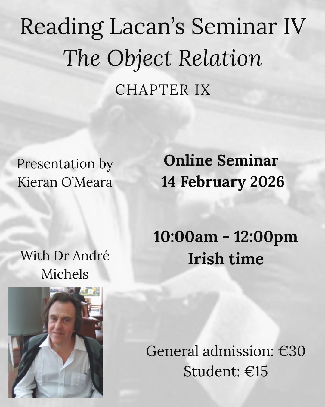 Join Espace Analytique Ireland for an in-depth exploration of Section IV, with Dr. André Michels. DATE: Saturday 9th November 2024…